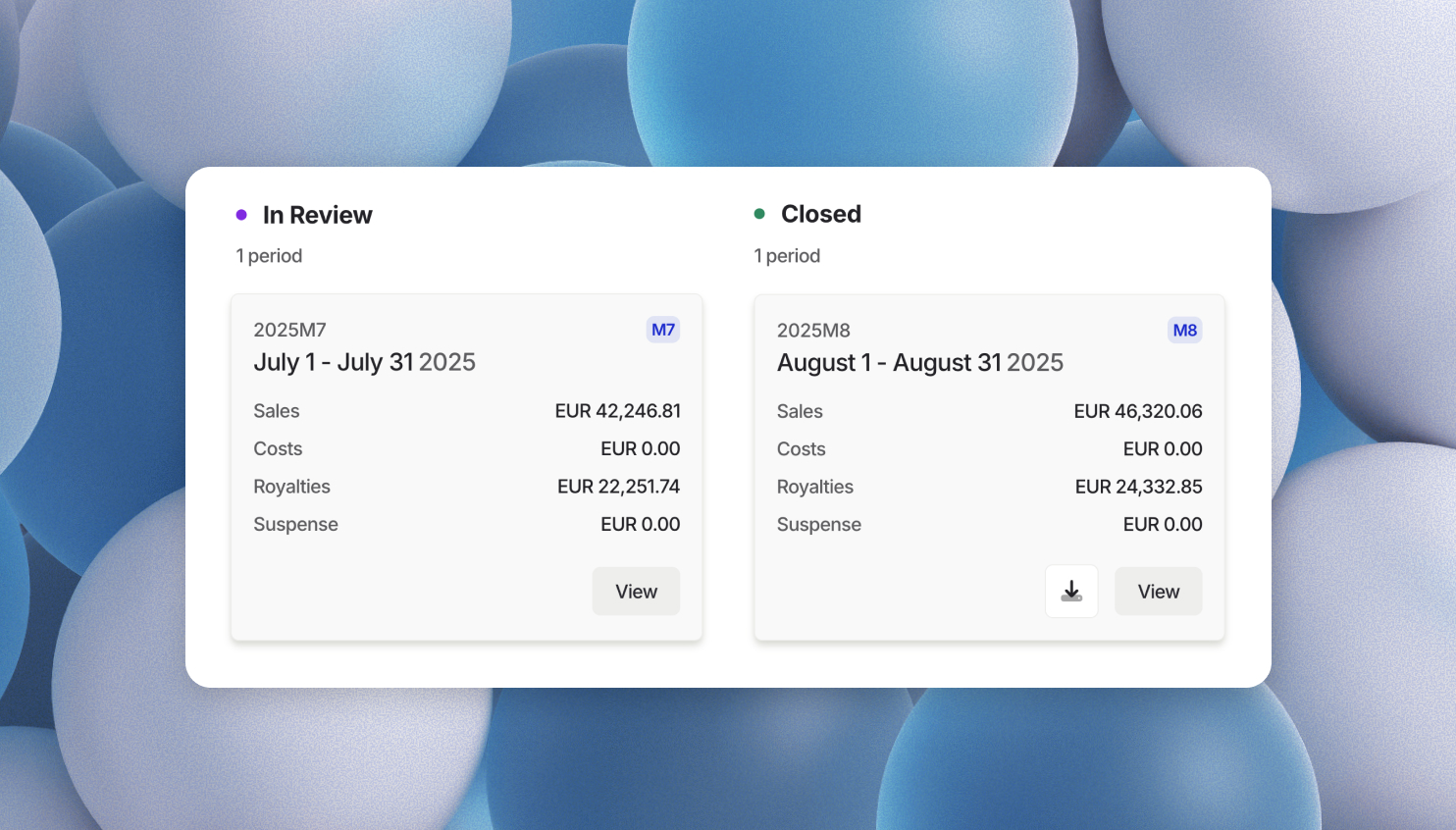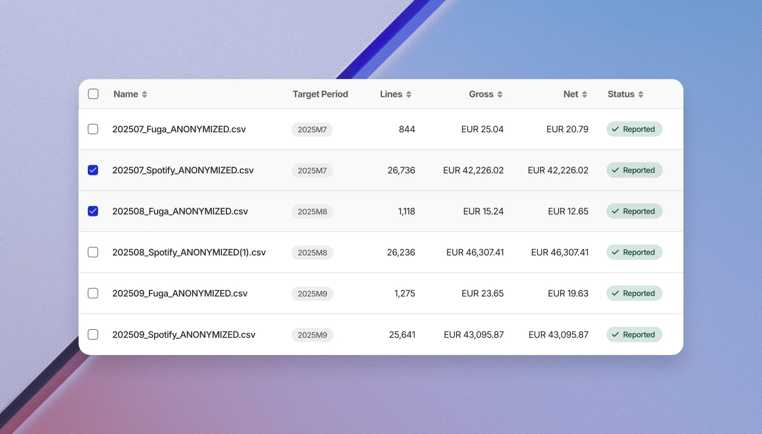 Save time with automation while staying in control: bulk-assign contracts, filter and select exactly what you need, automatically map incoming sales data, and quickly resolve issues with a clear suspense view and one-click reprocessing.